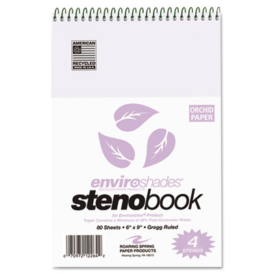 ROA12264 Enviroshades Steno Notebook, Gregg, 6 x 9, Orchid, 80 Sheets/Pad, 4/Pack By ROARING SPRING PAPER PRODUCTS