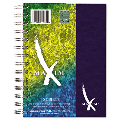 ROA13205 Maxim Notebook, College Rule, 7 x 5, 1 Subject, 80 Sheets/Pad, Assorted By ROARING SPRING PAPER PRODUCTS