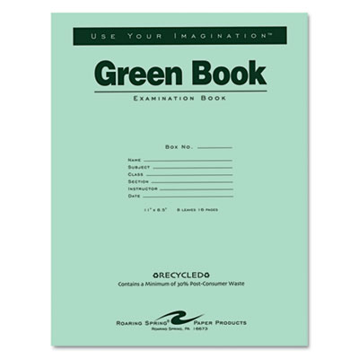ROA77509 Green Books Exam Books, Stapled, Wide Rule,11 x 8 1/2, 8 Sheets/16 Pages By ROARING SPRING PAPER PRODUCTS