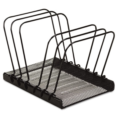 Offers an easy way to manage files and documents. Keep papers off your desk and within easy reach to minimize clutter and increase organization. Unique design allows you to thumb through files without removing them from sorter. Desktop File Folder Sorter Type: Vertical File Sorter; Number of Compartments: 5; Material(s): Wire Mesh.