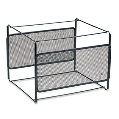 Keep your desk clean and clutter-free. Holds letter size hanging file folders (sold separately). Contemporary mesh design adds style, efficiency and productivity to your desktop. Hanging File Folder Rack Type: Wire Mesh; For File Size: Letter; Capacity (text): 8 11/16".