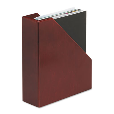 Solid wood magazine file handsomely displays and organizes magazines while the rich finish adds a warm, elegant look to your office. Large labeling space. Nonskid pads. Magazine Files Type: Desktop; Material(s): Wood; Width: 3 1/2".