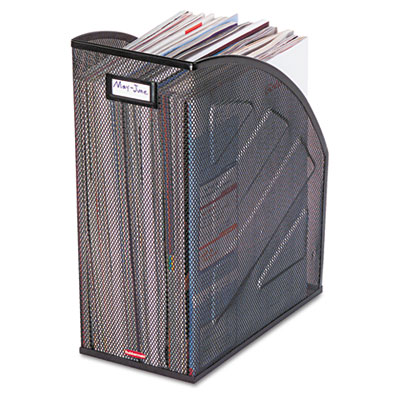 Nestable design saves space, increases efficiency and productivity. 50% more capacity than standard magazine files to hold more magazines, periodicals and journals. Features name plate for labeling (label not included). Magazine Files Type: Desktop; Material(s): Rolled Mesh Steel; Width: 5 7/8".