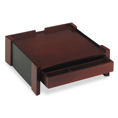 ROL81776 Monitor Stand, Drawer/Cord Organizer, 14 1/2 x 13 1/2 x 5 1/8, Black/Mahogany By RUBBERMAID