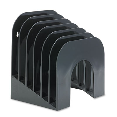 Tiered sections make content viewing and retrieval easy. For letter and A4 size file folders; sturdy enough for spiral notebooks. Tall vanes keep papers upright. Extra thick plastic for maximum durability. Wall mountable. Desktop File Folder Sorter Type: Inclined File Sorter; Number of Compartments: 6; Material(s): Plastic.