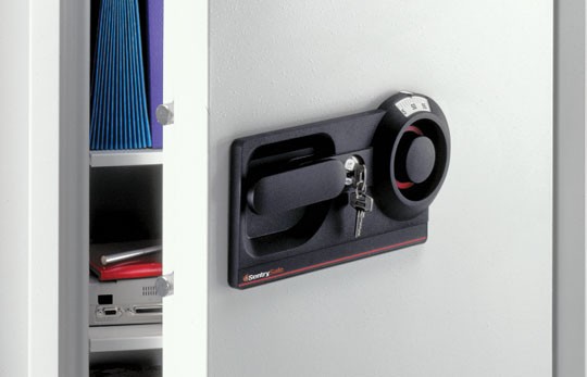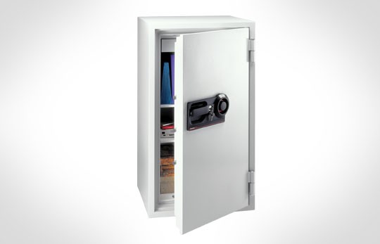 The Sentry S8371 commercial combination lock fireproof safe is UL classified for one hour of proven fire protection. The door features a combination with a key lock. There is a locking drawer for small valuables and 2 multi-position shelves. Security on the Sentry S8371 features 5 live -locking bolts and continuous bolts on the hinge side of the door. The color is a light gray finish.