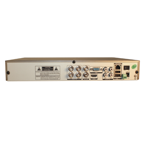 Specifications: Video Format = D1, Video Input = 4 CH composite BNC, Video Output = 1CH TV Output RCA,1CH VGA Out,1*HDMI(1080P), Audio Input= 4 RCA Input, Audio Out = 1 RCA out, Resolution = 720 × 480 (NTSC), 720 × 576 (PAL), Display Rate = Real Time 120 fps, LAN Connector = RJ45, Power= 12 V, Dimensions = 8½” × 8” × 1½” Includes: IR Remote Control, USB Mouse, 4 Channel Embedded DVR, 500GB Hard Drive