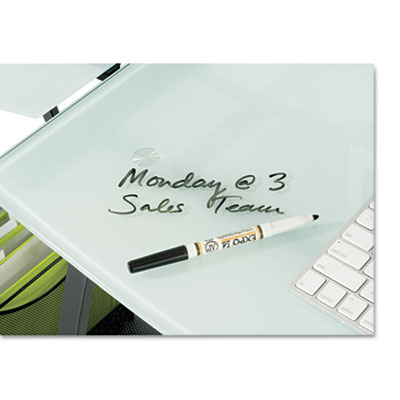 - Take note! Unique tempered glass worksurface accepts a dry erase marker so you can jot down important numbers, notes and messages.