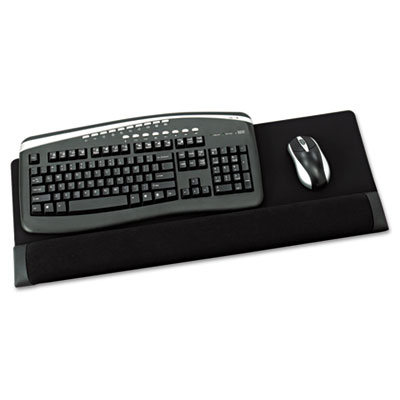 Provides one wrist rest for both keyboard and mouse. Platform secures under standard keyboard with mouse pad at the side. Suede nylon fabric is extra soft, seamless, with a luxurious feel. Cover is soil-resistant and washes easily. Rest is internally reinforced for durability. Wrist Filling Material: Foam; Mouse Pad/Wrist Rest Type: Keyboard Wrist Rest; Color(s): Black.