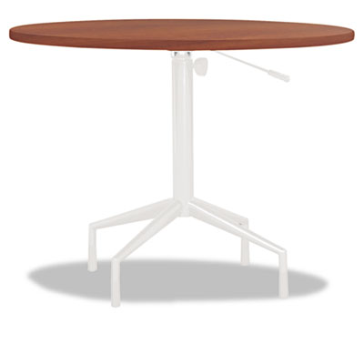 Style and elegance work together to create the perfect choice for your hospitality needs. Durable laminate provides years of use. Top and Base sold and shipped separately—ORDER BOTH. Top Color: Cherry; Top Shape: Round.