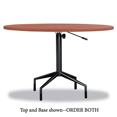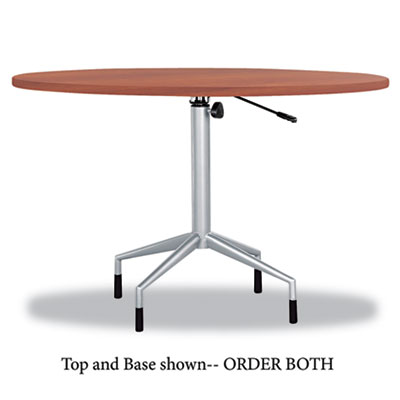 Style and elegance work together to create the perfect choice for your hospitality needs. Durable laminate provides years of use. Top and Base sold and shipped separately—ORDER BOTH. Top Color: Cherry; Top Shape: Round.