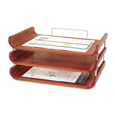 SAF3641CY Desk Tray, Three Tiers, Bamboo, Letter, Cherry Finish By SAFCO PRODUCTS