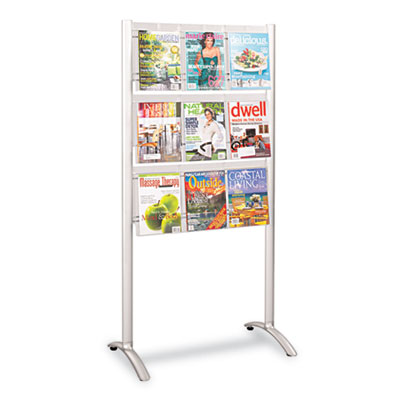 SAF4135SL Luxe Magazine Rack, 9 Compartments, 31-3/4w x 20d x 62-3/4h, Silver/Clear By SAFCO PRODUCTS