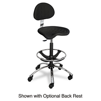 Accommodates desk height to counter height activities. Oversized “tractor” shaped seat with durable polyurethane foam construction. Optional Backrest sold and shipped separately. Recommended Applications: Drafting, Warehouse & Industrial—Stools; Seat/Back Color: Black; Features & Functions: Pneumatic Seat Height Adjustment.