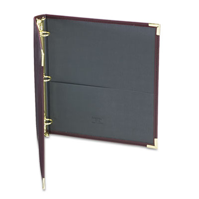 Curved, smooth spine with concealed rivets and leather-like vinyl cover with handcrafted sewn edges provide the professional appearance you are looking for. Brass-plated metal rings and corners are perfect accents to this binder. Two inside pockets add additional storage for loose documents. Capacity Range [Max]: 1"; Sheet Capacity: 225; Color(s): Burgundy.