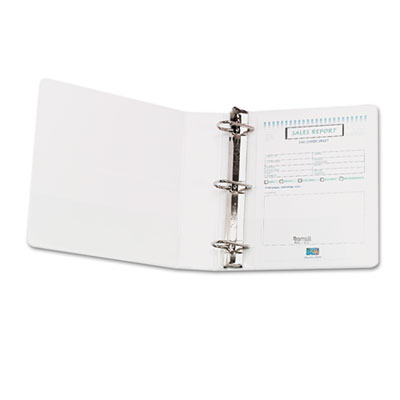 Clear overlay on front, back, and spine for easy customization. Environmentally friendly material will not stick or lift copy from cover insert or contents. Made from acid-free and archival safe polypropylene. Documents remain secure with locking D-ring that holds up to 25% more sheets than standard round rings. Two clear inside pockets for additional storage of loose papers. Capacity Range [Max]: 2"; Sheet Capacity: 500; Color(s): White.