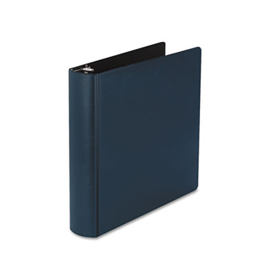 Designed for comfort, a professional look and oversized function. Curved back spine received Comfort Certification from US Ergonomics. Compact designs easily houses over-sized indexes and sheet protectors without overlap. Easy open Soft Click™ locking round ring opens with one simple motion. Premium vinyl sealed over heavy-duty chipboard for the highest quality binder. Ring mounted on back lid to reduce wear on paper. Capacity Range [Max]: 2"; Sheet Capacity: 450; Color(s): Dark Blue.