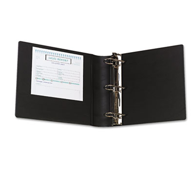 Designed for comfort, a professional look and oversized function. Curved back spine received Comfort Certification from US Ergonomics. Compact designs easily houses over-sized indexes and sheet protectors without overlap. Easy open Soft Click™ locking D-ring opens with one simple motion. Premium vinyl sealed over heavy-duty chipboard for the highest quality binder. Includes fast reference label holder. Capacity Range [Max]: 3"; Sheet Capacity: 650; Color(s): Black.
