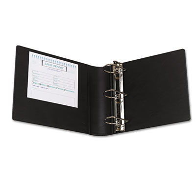 Designed for comfort, a professional look and oversized function. Curved back spine received Comfort Certification from US Ergonomics. Compact designs easily houses over-sized indexes and sheet protectors without overlap. Easy open Soft Click™ locking D-ring opens with one simple motion. Premium vinyl sealed over heavy-duty chipboard for the highest quality binder. Includes fast reference label holder. Capacity Range [Max]: 4"; Sheet Capacity: 800; Color(s): Black.