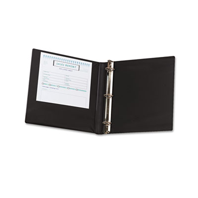 Designed for comfort, a professional look and oversized function. Curved back spine received Comfort Certification from US Ergonomics. Compact designs easily houses over-sized indexes and sheet protectors without overlap. Easy open Soft Click™ locking D-ring opens with one simple motion. Premium vinyl sealed over heavy-duty chipboard for the highest quality binder. Clear overlay on front, back, and spine for easy customization. Capacity Range [Max]: 1"; Sheet Capacity: 250; Color(s): Black.