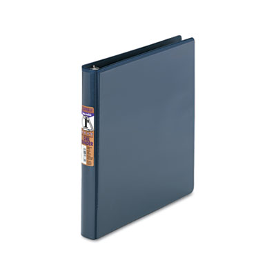 Designed for comfort, a professional look and oversized function. Curved back spine received Comfort Certification from US Ergonomics. Compact designs easily houses over-sized indexes and sheet protectors without overlap. Easy open Soft Click™ locking D-ring opens with one simple motion. Premium vinyl sealed over heavy-duty chipboard for the highest quality binder. Clear overlay on front, back, and spine for easy customization. Capacity Range [Max]: 1"; Sheet Capacity: 250; Color(s): Dark Blue.