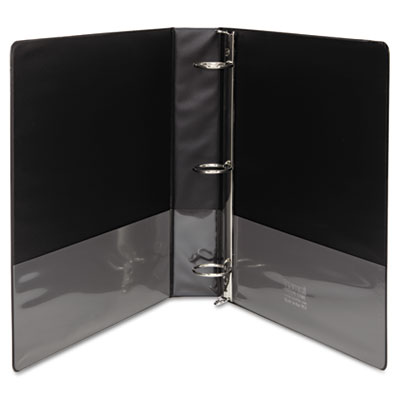 5x FASTER than traditional view binders. Save time, money, and frustration by loading spine inserts in seconds. Patent Pending spine construction for the fastest and easiest spine label insertion. No more damaging spine labels or need for special tools. Clear overlay on front, back, and spine for easy customization. Ring mounted on back lid to reduce the wear on paper. Capacity Range [Max]: 1 1/2"; Sheet Capacity: 350; Color(s): Black.