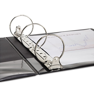 5x FASTER than traditional view binders. Save time, money, and frustration by loading spine inserts in seconds. Patent Pending spine construction for the fastest and easiest spine label insertion. No more damaging spine labels or need for special tools. Clear overlay on front, back, and spine for easy customization. Ring mounted on back lid to reduce the wear on paper. Capacity Range [Max]: 3"; Sheet Capacity: 575; Color(s): Black.