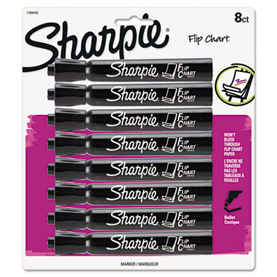 SAN1760445 Flip Chart Marker, Bullet Tip, Black, 8 per Card By SANFORD