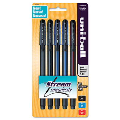 SAN1772525 Jetstream 101 Roller Ball Stick Water-Resistant Pen, Assorted Ink, Medium, 5/Set By SANFORD