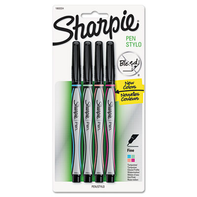 SAN1802224 Plastic Point Stick Permanent Pen, Assorted Fashion Colors, 4/Card By SANFORD
