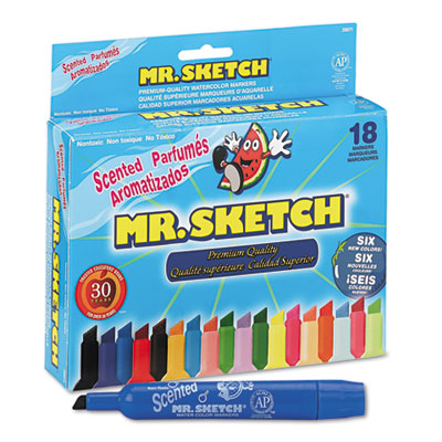 Perfect for artists of all ages. The fun, juicy scents will help spark even more creativity! Bright, vivid ink won't bleed through paper. Durable wide chisel tip for bold and fine lines. Marker Type: Art; Assortment: Black;Blue;Brown;Dark Green;Green;Lavender;Magenta;Mint Green;Orange;Peach;Petal Pink;Pink;Purple;Red;Sky Blue;Sunny Yellow;Turquoise Blue;Yellow; Color(s): Assorted.