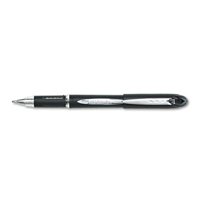 Contemporary styling coupled with an innovative ink system for high-speed writing and performance. Features Uni-Super Ink™ that helps prevent against check and document fraud. The smooth writing action of a gel meets the quick-drying properties of a ballpoint without smearing. Embossed comfort grip provides maximum control. Windowed barrel for monitoring ink supply. Pen Style: Stick; Ink Color(s): Black.