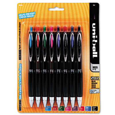 SAN40110 Signo Gel 207 Roller Ball Retractable Gel Pen, Assorted Ink, Medium, 8 per Set By SANFORD