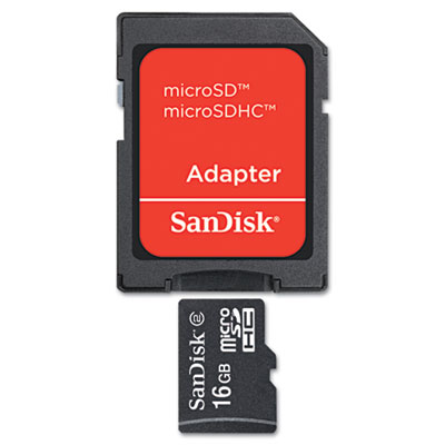 SDISDQ16384 microSD Memory Card w/Adapter, 16GB By SANDISK CORPORATION