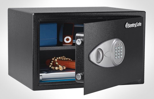 Sentry Safe Security Safe Model X125. Designed to protect cash, records and valuables, the SentrySafe Security Safe X0125 features solid steel pry-resistant door and body to protect against theft and unauthorized entry. Fits most laptops.