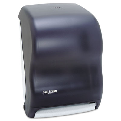 Hygienic touchless dispensing prevents germ spread. Just tear off towel and sensor activates to present another! Portion control provides 10” length every time. Dispenses any paper quality. Holds rolls up to 8” wide x 8” dia. and one 4” stub roll. Automatic transfer device allows complete usage of stub roll to eliminate waste. Towels Dispensers Type: Roll Towel Dispenser; Material(s): Plastic.