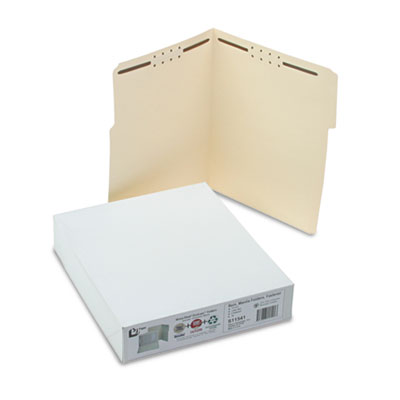 Protect documents and hands with specially formulated Manila stock. Made with WaterShed®/CutLess® paper, a unique stock that resists water and helps reduce paper cuts. Folders wipe clean and can be written on with pen or pencil. 2" capacity fasteners. Reinforced tabs. 11 pt. stock. File Folder Type: Top Tab; Size: Letter; Folder Material: 11 pt. Manila.