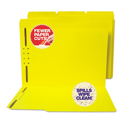 SJPS11542 Water/Cut-Resistant Folder, Two Fasteners, 1/3 Top Tab, Letter, Yellow, 50/Box By S&J PAPER