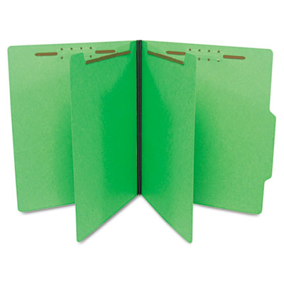 An economical way to maintain files. Durable 15 pt. stock covers with 1" capacity fastener on inside front and back. Double-sided fasteners on the two 15-pt. stock dividers. Reinforced gusset for long-wearing expansion. 2/5 cut tabs, right of center. Classification Folder Type: Top Tab; Size: Letter; Number of Sections: 6.