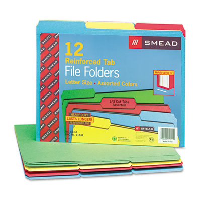 SMD11641 File Folders, 1/3 Cut, Reinforced Top Tabs, Letter, Assorted, 12/Pack By SMEAD MANUFACTURING CO.