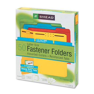 SMD11975 Folders, Two Fasteners, 1/3 Cut Top Tab, Letter, Assorted, 50/Box By SMEAD MANUFACTURING CO.