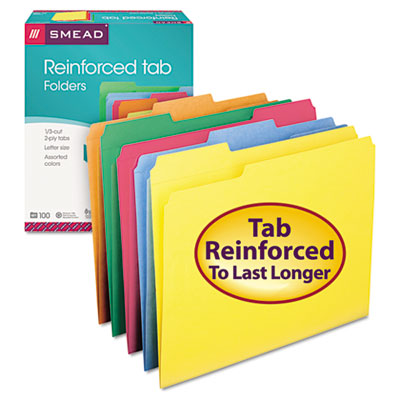 SMD11993 File Folders, 1/3 Cut, Reinforced Top Tab, Letter, Assorted, 100/Box By SMEAD MANUFACTURING CO.