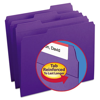SMD13034 File Folders, 1/3 Cut, Reinforced Top Tab, Letter, Purple, 100/Box By SMEAD MANUFACTURING CO.