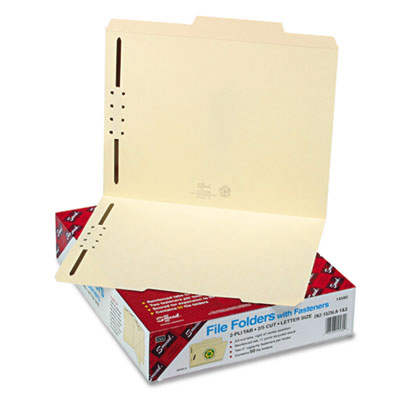 Hold papers securely and keep them in order with fasteners. Fasteners provide separate filing surfaces. Reinforced tabs for extra durability. File Folder Type: Top Tab; Size: Letter; Folder Material: 11 pt. Manila.