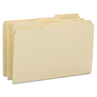Reinforced tabs provide extra strength where you need it most. An office necessity in a variety of tab cuts for every filing need. File Folder Type: Top Tab; Size: Legal; Folder Material: 14 pt. Manila.