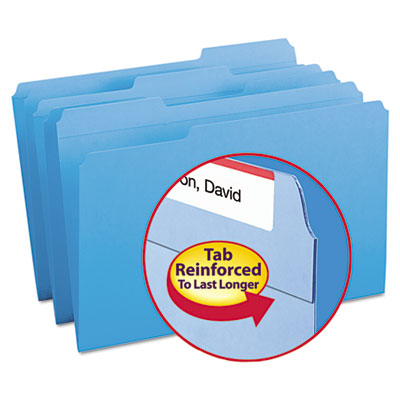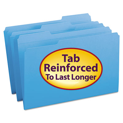 SMD17034 File Folders, 1/3 Cut, Reinforced Top Tab, Legal, Blue, 100/Box By SMEAD MANUFACTURING CO.