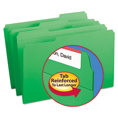 SMD17134 File Folders, 1/3 Cut, Reinforced Top Tab, Legal, Green, 100/Box By SMEAD MANUFACTURING CO.