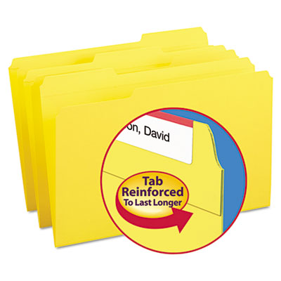 SMD17934 File Folders, 1/3 Cut, Reinforced Top Tab, Legal, Yellow, 100/Box By SMEAD MANUFACTURING CO.
