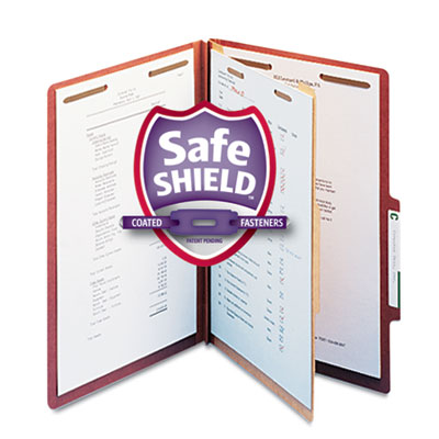 The ultimate classification folder when safety and security are most important. SafeSHIELD® bonded fasteners add protection for papers and fingers, while also reducing fastener crinkling. Made of pressboard for extra durability. Variety of colors for color-coding projects. Classification Folder Type: Top Tab; Size: Legal; Number of Sections: 4.