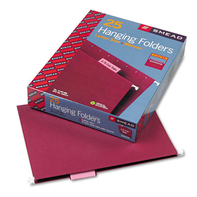 SMD64073 Hanging File Folders, 1/5 Tab, 11 Point Stock, Letter, Maroon, 25/Box By SMEAD MANUFACTURING CO.